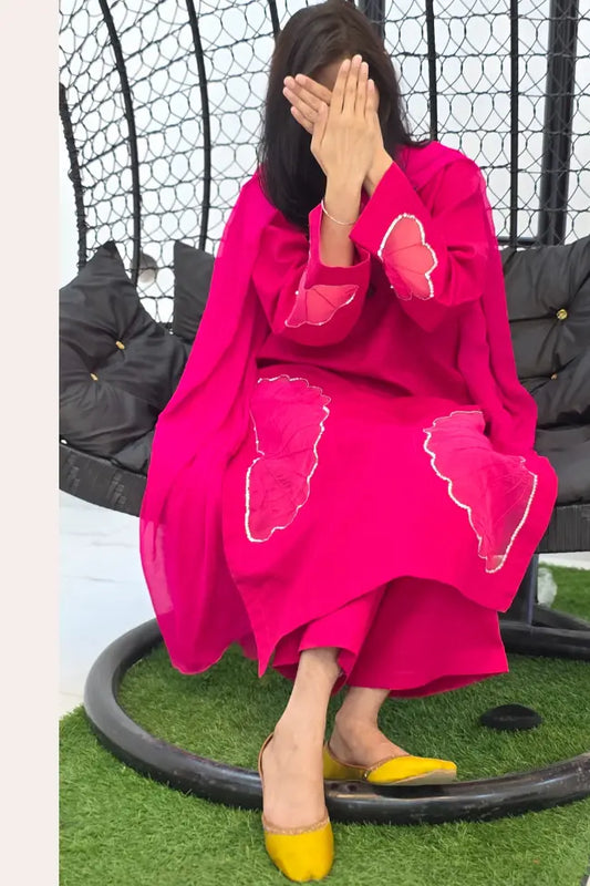 3-Piece Khaddar Suit with Handmade Floral Cutwork